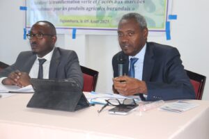 Cyrille Sigejeje (au micro), ex Administrateur Directeur Général de la Banque de Gestion et de Financement (BGF): « L’accès au crédit au Burundi reste difficile pour les petites et moyennes entreprises, car les banquiers posent beaucoup de conditions pour ne pas travailler à perte ».