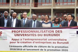 Dans son discours de circonstance de portée à la fois diplomatique et académique, Stéphane Gruenberg a salué ce projet de l’AUF financé par le pays dont il est représentant au Burundi. Selon l’Ambassadeur Gruenberg, c’est un signe qui montre que la France mise sur les jeunes entrepreneurs et leurs talents pour participer activement au processus de développement de leur pays. Il a signalé en passant l’existence d’un lien étroit entre la politique de la France qui se positionne en faveur de l’entrepreneuriat des femmes et des jeunes tout en misant sur l’entrepreneuriat universitaire. « Cet engagement de la France s’inscrit dans la droite ligne du Plan National de Développement du Burundi 2018-2027 », tient-il à rappeler.