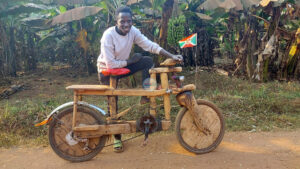 Dans la commune de Bugendana, en province de Gitega, une innovation attire les regards et suscite l’admiration. Dominique Manirakiza plus connu sous son nom d’artiste M.C Furahisha, humoriste vivant sur la colline Gerengabo, zone Rwisabi a conçu un vélo hors du commun, fabriqué en bois.