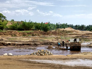 Plus de 600 personnes passent leurs journées à extraire des matériaux de construction dans la rivière Mugere. Cette dernière traverse la Route Nationale numéro 3, en contrebas du marché de Ruziba dans la commune de Mugere. Comme dans tant d’autres rivières du pays, on y pratique l’extraction du sable, du gravier, de moellons, etc. Au total, ces extracteurs sont à dans neuf coopératives comptant chacune entre 60 et 80 membres, réparties sur neuf sites le long de cette rivière.