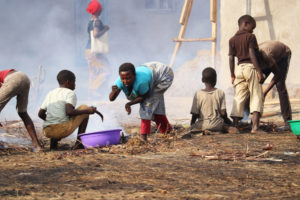 La journée était très ensoleillée. A 15 heures passées, le ciel est toujours clair au-dessus du centre de négoce de Gatumba. Nous empruntons un sentier en terre battue. A une cinquantaine de mètres, au fond du quartier Gaharawe dans la zone de Gatumba, un commerce particulier de poissons s’est développé. Plusieurs personnes sont sur place. Le feu est toujours allumé par endroits. Des fumées mêlées d’odeurs de poissons grillés coupent le souffle aux passants. Sur une vaste parcelle non bâtie, le sol est couvert de cendres où grouillent des personnes occupées à ramasser de petits poissons.